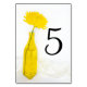 Diese fröhliche Gelbe Blume in Vase Wedding Tischnummern fügen einen natürlichen Flair zu den Tischen in Ihrem Sommer Verlobung Garten Party, Brautparty oder Heirat Empfang Abendessen. Diese hübschen Hochzeitskarten mit Blumen und Blumen zeigen ein elegantes Blumenfoto einer gelben Glasvase, die mit einer gelben Chrysanthemum-Blume-Blüte am Stamm mit weißer Seide gefüllt ist.