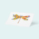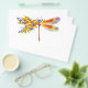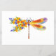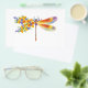 Künstlerisch bemalt, florale Libelle in kontrastierender Orange und lila mit gelben, hellen, blühenden kalifornischen Mohn und blauen Wildblumen auf weißem Hintergrund.