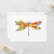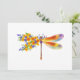 Künstlerisch bemalt, florale Libelle in kontrastierender Orange und lila mit gelben, hellen, blühenden kalifornischen Mohn und blauen Wildblumen auf weißem Hintergrund.