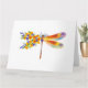 Künstlerisch bemalt, florale Libelle in kontrastierender Orange und lila mit gelben, hellen, blühenden kalifornischen Mohn und blauen Wildblumen auf weißem Hintergrund.