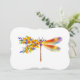 Künstlerisch bemalt, florale Libelle in kontrastierender Orange und lila mit gelben, hellen, blühenden kalifornischen Mohn und blauen Wildblumen auf weißem Hintergrund.