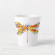 Künstlerisch bemalt, florale Libelle in kontrastierender Orange und lila mit gelben, hellen, blühenden kalifornischen Mohn und blauen Wildblumen auf weißem Hintergrund.
