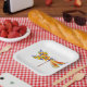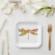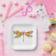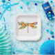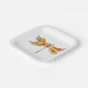 Künstlerisch bemalt, florale Libelle in kontrastierender Orange und lila mit gelben, hellen, blühenden kalifornischen Mohn und blauen Wildblumen auf weißem Hintergrund.