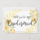 Werden Sie meine Bridesmaid-Karten mit schönen gelben Blumen und benutzerdefinierten schwarzen Text, wo Sie Ihre und Bridesmaier Namen auf weißem Hintergrund gedruckt hinzufügen können