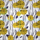 Seamless retro style illustration with yellow flowers and blue leaves on background