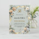 Ein schlauer grüner Hintergrund. Weiße und gelbe Blumen und ein goldenes Band. Personalisieren Sie Ihren Namen, Ihr Alter und Ihre Details.