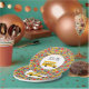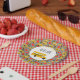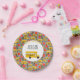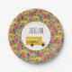 Gelbe Bushaltestelle der Schule Unterschreiben von Pappteller