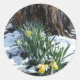 Gelbe Daffodien im Schnee Runder Aufkleber