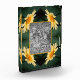 Durch die markante, gelbe, farbige Blume, die vor einem dunkelgrünen Hintergrund nah ist, fügt ein abstrakter Rahmen, der aus meinem originalen Foto erstellt wurde, Ihren eigenen Foto-Block hinzu. Blumenfotografie von Susan.