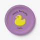 Gelbe Ente Happy Birthday Violet Farbe Pappteller