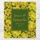 Ein helles und fröhliches Blumenmuster, das die Narzisse darstellt, eine klassische Frühlingsstiftung, die mit der Wiedergeburt und Neuanfängen verbunden ist. Das perfekte Thema für eine Frühjahrshochzeit, die aus gelben Narzissen in voller Blüte besteht, die auf einem grünen Garten-Hintergrund angeordnet sind. Text ist in einem Skriptstil, goldgelb in Farbe und ist leicht an die Namen, Daten und Orte Ihrer Wahl angepasst.