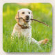 Gelbe Labrador-Plays mit Stick Getränkeuntersetzer