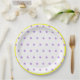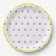 Geometrische lila Polka-Punkte auf weißem Hintergrund. Gelb. Original Design © TamiraZDesign.