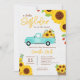 Mit dieser rustikalen Sonnenblumen-Baby-Duschkollektion feiern Sie Ihren kleinen Sonnenschein mit einem charmanten Vintagen LKW, Aquarellsonnenblumen und warmen Bohustönen. Ideal für eine Babydusche im Hinterhof oder eine Herbstfeier.