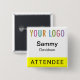 Mit Ihrem Event-Logo, Ihrem Teilnehmernamen oder einem anderen benutzerdefinierten Text personalisieren Sie unser Abzeichen für die Teilnehmer einfach. Es hängt mit einem sicheren Button zurück. Konzipiert in Gelb und anderen Farben (alle Farben sind anpassbar). Unsere quadratischen Tasten sind 2 Zoll x 2 Zoll. Hergestellt in den USA. Keine Mindestbestellmenge und keine Einrichtungsgebühr.