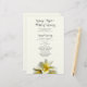 Hochzeitsfeier mit gelben Blume. Hellgelbes Papier mit Vorlagen auf beiden Seiten für eine traditionelle Hochzeitsfeier. Auf der Vorderseite ein Titel, Datum, Ort und Reihenfolge der Zeremonie. Auf der Rückseite, nennen Sie die Hochzeitsfeier, Beamte, Eltern und Großeltern, und fügen Sie einen Absatz des Dankes. Liebte, die weitergegeben haben, können auch erwähnt werden. Dieses Papier enthält Upgrades.