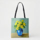 Tote-Tasche in einer Boho Kunstillustrierung gelber Rosen in einer blauen Keramik Vase