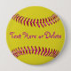 Gelbe Softball-Buttone mit rosa Faden, IHR TEXT Button