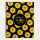 Gelbe Sonnenblumen auf Schwarzer Monogramm Planer
