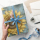 Gelbe Sonnenblumen mit blassblauem Hintergrund Geschenkpapier