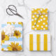 Gelbe Sonnenblumenfelder und Streifen-Muster Geschenkpapier Set