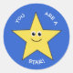 Ein Aufkleber, um Lob und Ermutigung zu zeigen. Dieser hellgelbe Stern hat helle Augen und ein großes Lächeln und ist auf einem blauen Hintergrund dargestellt. Der beiliegende Text in Weiß lautet "YOU ARE A STAR!", oder dieser kann für Ihre eigene Beschriftung bearbeitet werden.