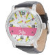 Gelbe Stifte und Scrables auf weiß Armbanduhr