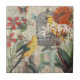 Dieses Bild von gelben Papageien und Blume ist eine wunderschöne moderne Collage aus mehreren antiken Malereien von Vögeln, Blume und Vogelkäfigen.