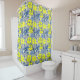 Gelbe und blaue Blumen mit Glitzern. Duschhaube Duschvorhang