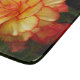 Auf dieser dekorativen, gläsernen Schneideplatte, die das Foto einer wunderschönen, gelben und roten Begonia-Blume zeigt, würfeln und würzen Sie Ihr Essen sicher. Ideal für das Zerkleinern von Obst und Gemüse sowie Käsesorten. Ein schönes, blumengeschmücktes Design!