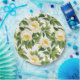 Gelbe und weiße Claire de Lune-Pioniere Pappteller