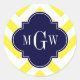 Gelbe Zickzack Navy-Quatrefolie 3 Monogramm Runder Aufkleber