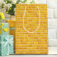 Diese bezaubernde Geschenktasche ist mit einem zauberhaften, gelben Ziegeldesign ausgestattet, das die geliebte Yellow Brick Road des Zauberers von Oz würdigt. Die handlich illustrierten Ziegelsteine winden spielerisch über die Oberfläche und schaffen ein Gefühl von Bewegung und Launen. In warmen, goldgelben Farbtönen mit sanftem Schatten und subtiler Textur fühlt sich das Muster aus einem klassischen Geschichtenbuch heraus an. Robuste Griffe aus weißem Band und eine passende Option aus gelbem Papier runden das Aussehen ab. Ideal für thematische Feiern, Geburtstage oder Geschenke, um ein kleines Abenteuer inspirieren.