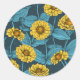 Gelbe Zinnien in dunkelblau Runder Aufkleber
