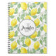 Ein Wendelheft personalisiert mit einem Monogramm-Initial und Name in einem weißen Kreis mit einem schwarzen Seilrand. Entworfen mit gelben Zitronen und grünen Blätter, in einem sich wiederholenden Muster.