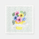 Gelber Behälter mit pastellfarbenen Stiefmütterche Serviette