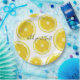 Gelbe Limonenservietten. Modernes geometrisches Design. Frische Zitronenbilder.