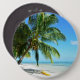 Gelber Kajak auf einem weißen Sandstrandknopf Button