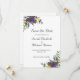 Hochzeit Speichern Sie die Datumskarte. Lila Gelb und Grün Blumendesign mit Platz auf der Rückseite für Ihre Hochzeitswebsite QR Code.