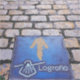 Der gelbe Pfeil markiert den Jakobsweg (Camino de Santiago), Logroño, La Rioja, Spanien