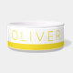 Gelber Streifen personalisierte Haustierschüssel für Hunde- oder Katzenfutter oder Wasser mit einem modernen Schriftart und Platz, um den Namen Ihres Haustieres einzugeben. Klicken Sie auf 'Weiter', um die Stripfarbe oder den Schriftart zu ändern.