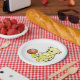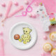 Ein niedlicher, gelber Teddybär, der mit einem Ball sitzt. Dieses Design wirkt auf diese Paper-Teller sehr effektiv