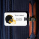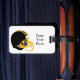 Ein großer Gepäckumbau, der Sie von der Menge heraus stehen lässt. Er kennzeichnet eine Grafik eines gelben und schwarzen Football-Helms auf der Front und der Rückseite. Sie können den schwarzen Text besonders anfertigen. Vervollkommnen Sie für Ihr Gepäck oder Fußballtasche.