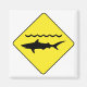 Magnet mit einem gelben Verkehrszeichen mit einem 'Warn Hai' Symbol.