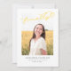 Diese Ankündigung des modernen Abschlusses zeigt das Wort, das endlich in sonniger Gelbtönen über einem Single-Foto geschrieben wurde. Die Rückseite der Karte kann für zusätzlichen Text oder als Einladung verwendet werden.