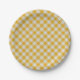 Gelbes Gingham-Kariertes Prüfmuster Pappteller
