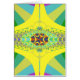 Helles gelbes Hundertfüßer-Fraktal mit Ovalen auf einem blauen und grünen gestreiften Hintergrund. Wilder abstrakter Hippiehundertfüßer in den funky gelben Farben.