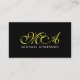 Gelbes Monogramm Elegantes Script Schwarzer Hinter Visitenkarte