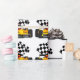 Gelbes Rennwagen mit Checkbox Geschenkpapier