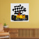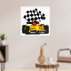 Gelbes Rennwagen mit Checkbox Poster